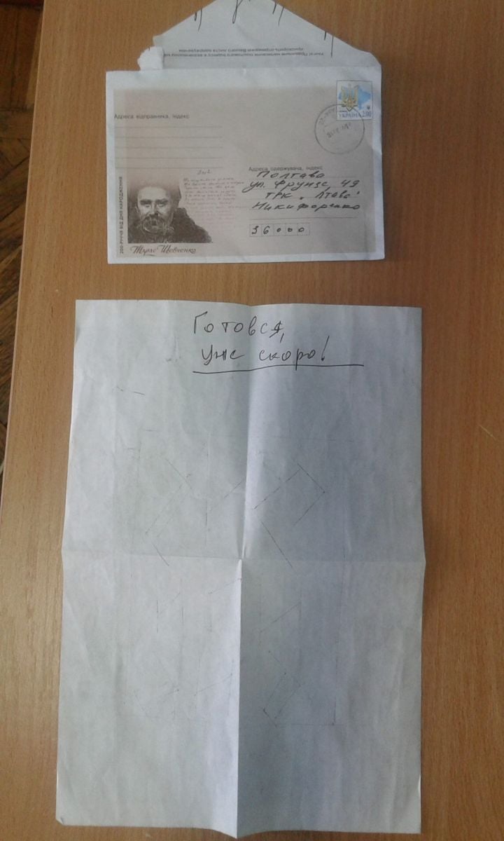 "Сегодня поступило письмо в адрес телецентра. Я забрала, а там мое фото, на обратной стороне фраза "готовься, уже скоро!". Коллега позвонил мне в 12.30, рассказал, что вынул письмо вместе с газетами с почтового ящика на Фрунзе, 49. Почерк такой же, что и в первом письме ", - сказала Никифоренко в комментарии региональной представительницы ИМИ в Полтавской области.