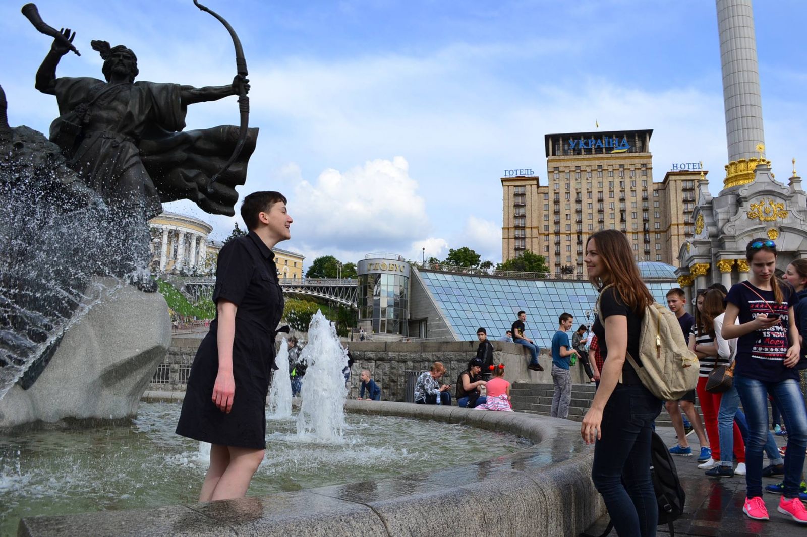 Киевляне публикуют в социальных сетях фотографии освобожденной украинской летчицы Надежды Савченко. Первый день свободы от российских застенков, Киев и киевляне.
