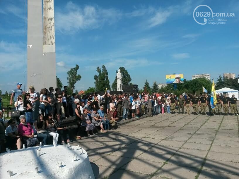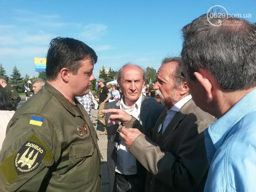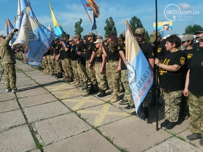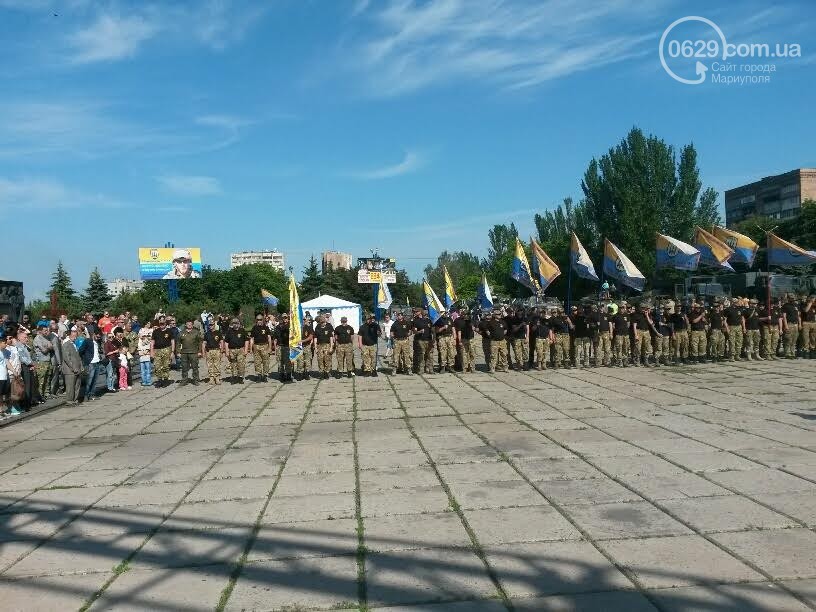 Бойцов полка поздравил народный депутат Украины Семен Семенченко, который ранее возглавлял батальон. Затем на сцену вышел действующий комбат с позывным "Гал". Ему представители городской власти вручили флаг Мариуполя и сувениры, пищет 0629.