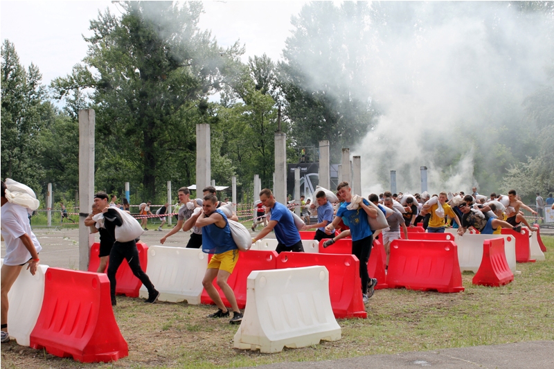 В сборную «НАНГУ» - будущих триумфаторов - вошли капитан Артем Турчинов, сержант Владислав Прилипа, младший сержант Сергей Белоус, курсант Александр Беззубенко и курсант Руслан Ткачук. Кроме обычного бега на протяжении всего пути гвардейцев ожидали интересные и изнурительные препятствия - связанные с подъемами и спусками, водой, грязью, песком, холодом, высотой, перемещением предметов, огнем и физическими нагрузками. С общим временем преодоления дистанции в 50 минут наша сборная оказалась быстрее и проворнее других 33 команд и заняла первое место.