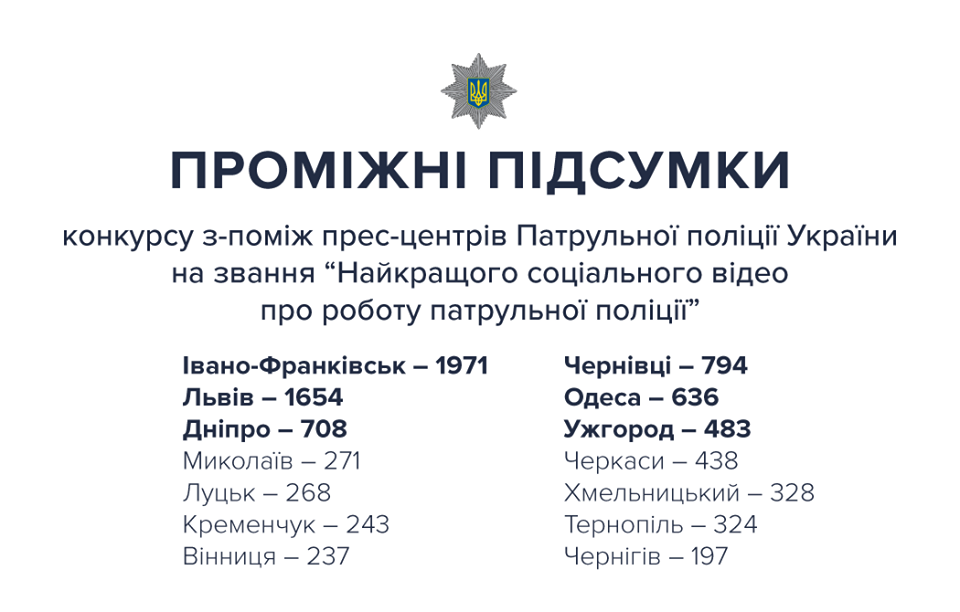 Друзі! Нагадуємо, що проводиться конкурс на Краще соціальне відео про роботу патрульної поліції. Участь беруть 14 міст. ...