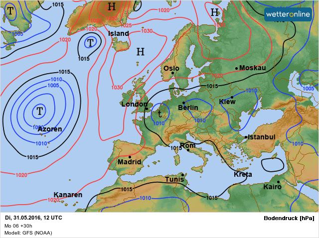 "То, что у нас - дожди, лишний раз не напоминаю, но вот почему эти дожди? Взгляните на карту. Возле Бельгии, Германии, Польши и над Украиной - три синих круга. Это локальные циклоны одной мощной циклонической области, которая охватила большую часть территории континентальной Европы. А циклоны или циклоническая область, иначе говоря, зоны низкого атмосферного давления, или атмосферные вихри - обычно причина неустойчивой погоды с дождями, грозами, градом и шквалами. Не знаю, легче ли вам от этого, но по крайней мере, когда знаешь причину, оно как-то понятнее.