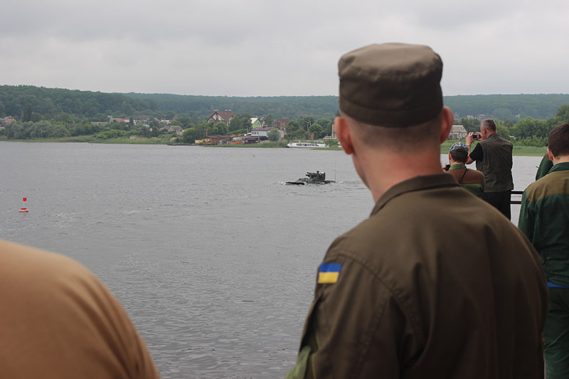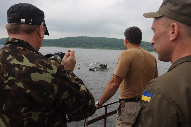 «По результатам испытаний могу сказать, что бронетранспортер справился с ними на отлично. Особенность этого БТРа - он очень легко готовится к движению по воде, достаточно скоростной и маневренный во время передвижения в воде. Мы испытали заезд в воду под углом 25 градусов и он с легкостью справился с этой задачей. Это очень мощный бронетранспортер и, что самое приятное, украинского производства», - отметил Виктор Кашпур.