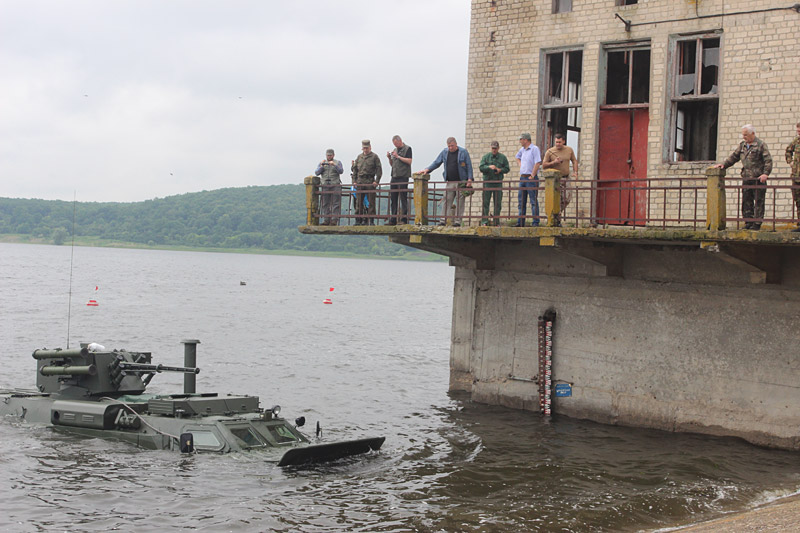 Старший преподаватель кафедры эксплуатации и ремонта автомобилей и боевых машин подполковник Виктор Кашпур принял участие в испытаниях модернизированных БТР-4 на воде. Испытания проводились на Салтовском водохранилище.