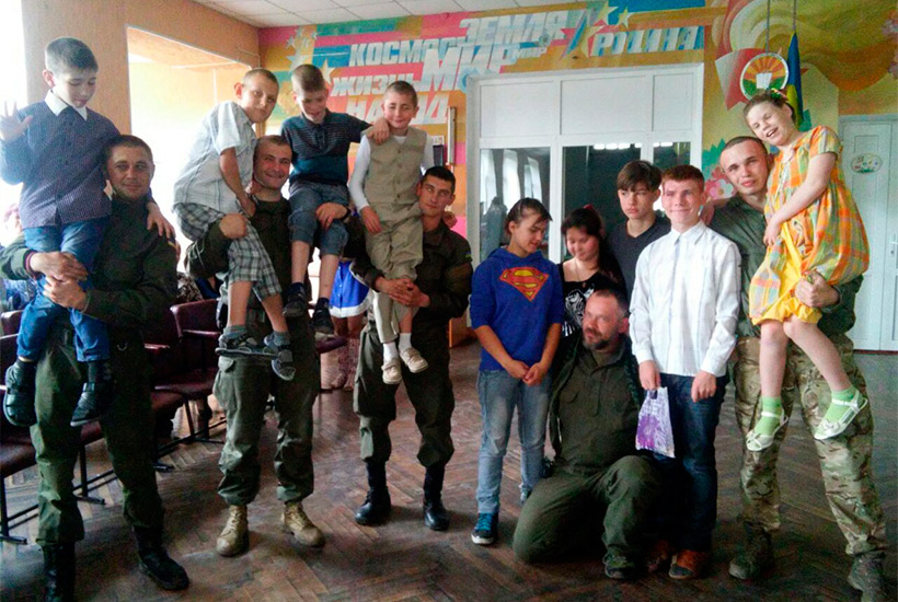 Нацгвардейцы воинской части 3017, которые выполняют задачи в антитеррористической операции, в День защиты детей посетили детский дом-интернат г. Горское Луганской области.