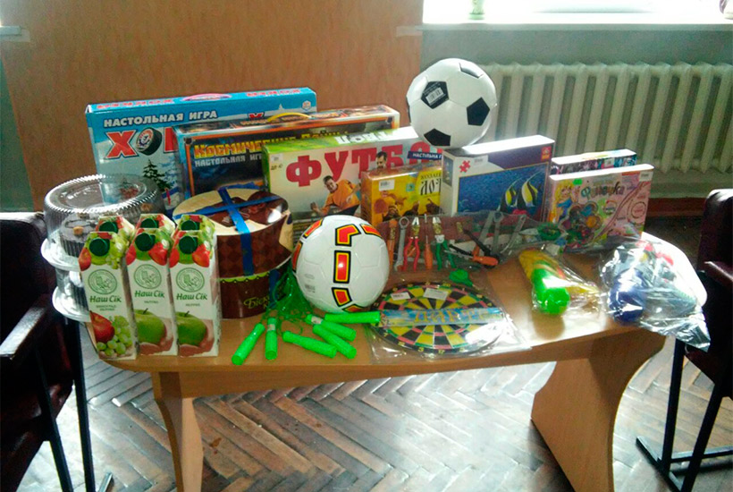 В этом заведении проживают дети с умственными и физическими недостатками, а также дети-сироты. Конечно, военнослужащие в такой день не могли приехать с пустыми руками. Детям подарили настольные игры, мячи и накрыли сладкий стол. Воспитанники были очень довольны таким визитом, с восторгом пообщались с военными и поиграли вместе в игры.