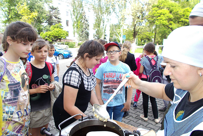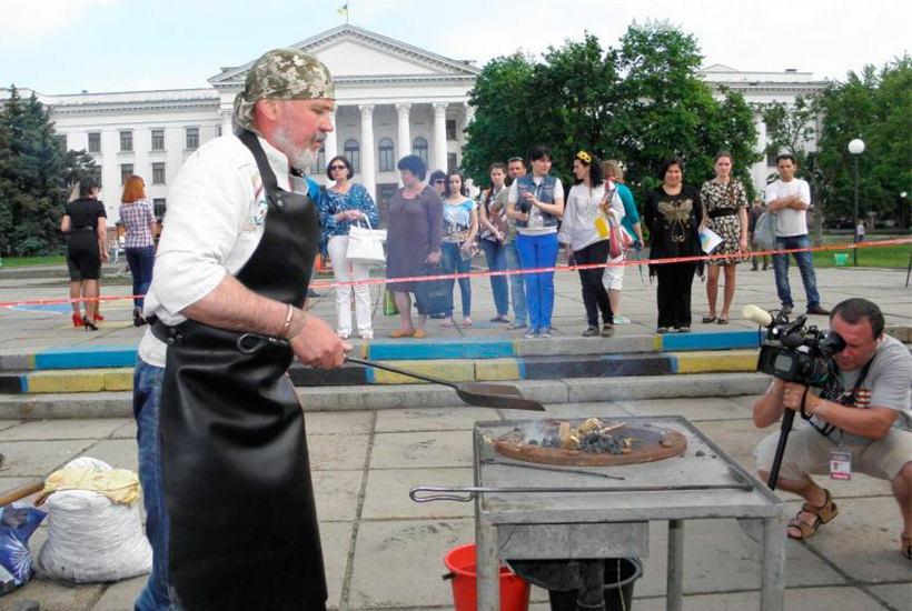 Праздничные мероприятия начались с выставки кузнечного искусства, выставки-продажи произведений Ивана Франко и литературы о творческом и жизненном пути творца. Жители города посмотрели концертную программу, произведения юных художников Донетчины и отведали вкусную солдатскую кашу, приготовленную для них гвардейцами. Первыми кашу продегустировали журналисты и остались очень довольны, а за ними потянулись к солдатской полевой столовой зрители.