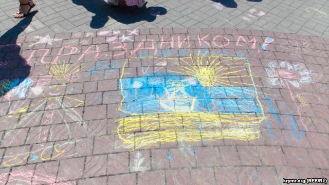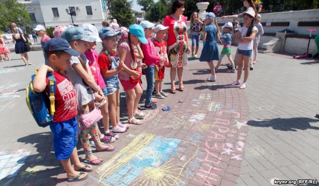 В Севастополе 1 июня проходят праздничные мероприятия ко Дню защиты детей, в ходе которых дети рисовали на асфальте свои рисунки, выбирая цвета украинского флага.