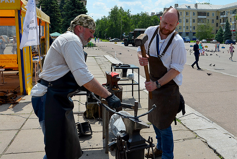 Также краматорчане наблюдали за виртуозной работой кузнецов, которые на глазах из куска металла создавали настоящую красоту.