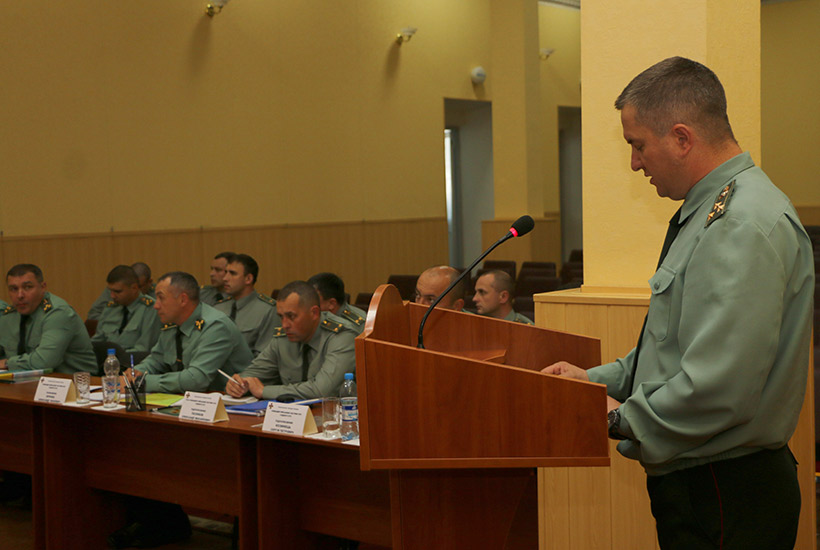 Генерал-майор Юрий Лебедь и заместители начальника управления заслушали доклады каждого командира части на заранее определенные темы и задавали уточняющие вопросы.