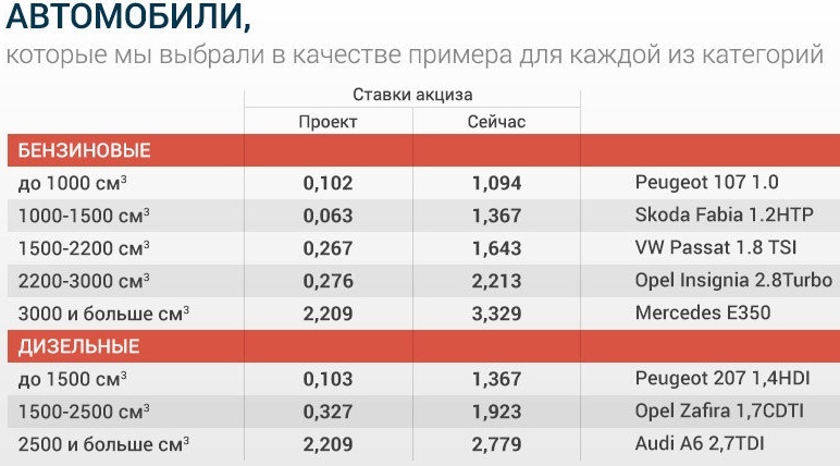 Например, в популярном сегменте легковушек с объемом двигателя от 1 до 1,5 л картина такова: «растамаживая» согласно закрепленным в Налоговом кодексе «старым» нормам Шкоду Фабию 1,2 придется оплатить 1638 евро одного акциза. Если же закон вступит в силу, эта цифра станет равной… 75 евро.
