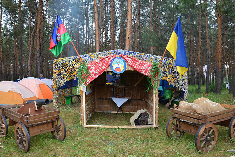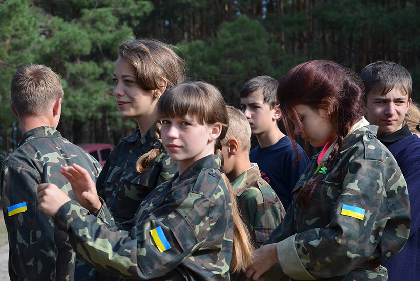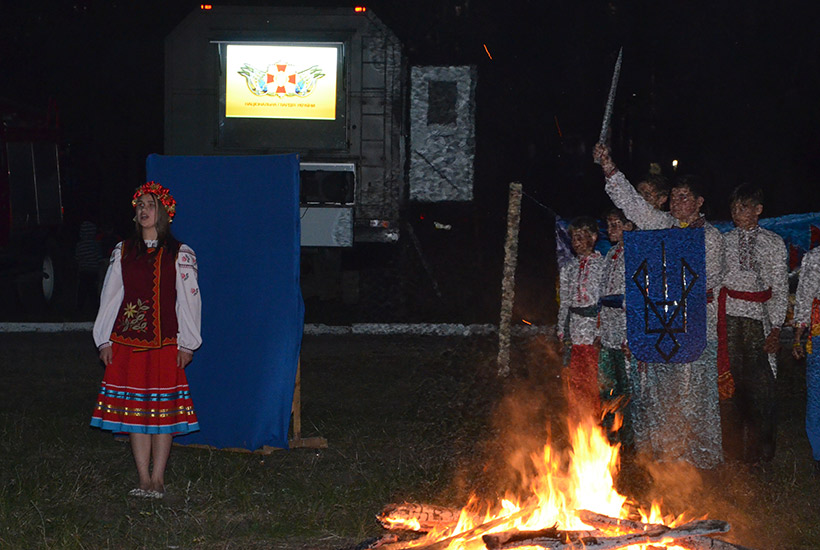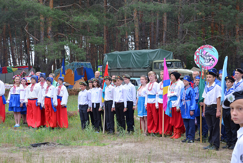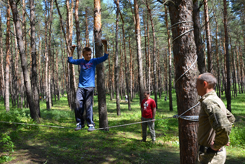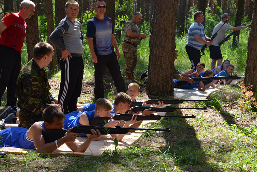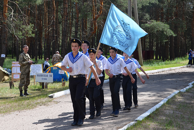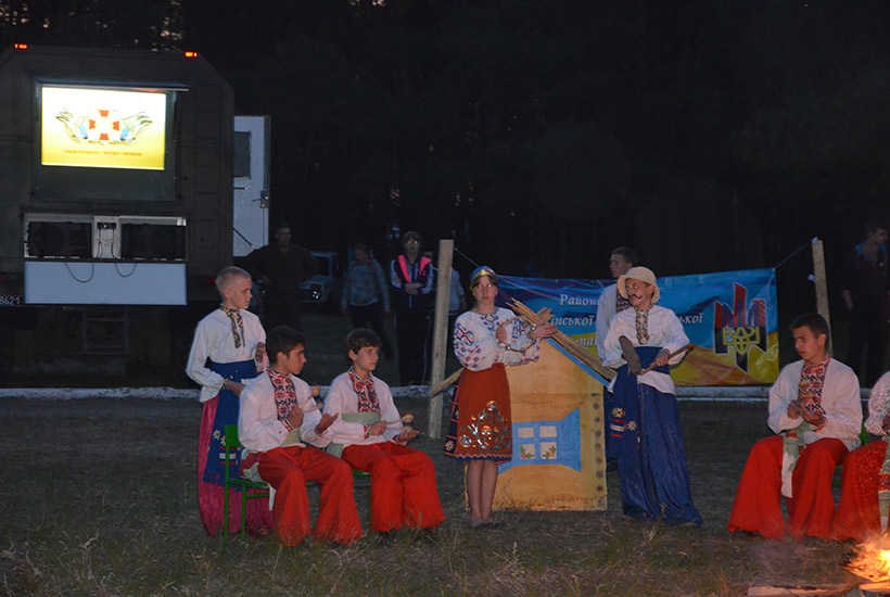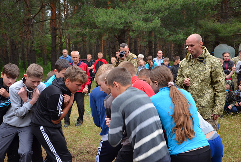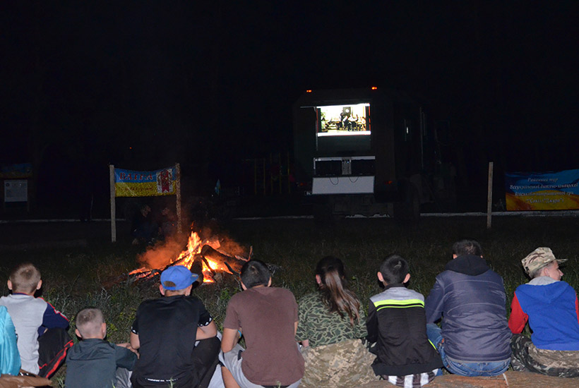 Каждое утро начиналось с поднятия флага и исполнения государственного Гимна, а по вечерам теплой компанией вокруг огромного костра дети выступали с музыкальными номерами или смотрели художественные фильмы на экране полевого автоклуба. Все время гвардейцы экспонировали агитационные плакаты по популяризации военной службы в рядах НГУ и важности священного долга каждого гражданина Украины - защиты государства.