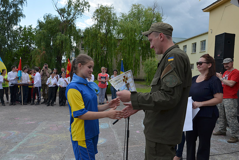 Судили соревнования строгие, но справедливые судьи, определившие победителем курень общеобразовательной школы №2 г. Счастье, через которое, кстати, проходит линия разграничения сторон. В качестве поощрительного приза и памятного сувенира каждой команде, экипаж автоклуба распечатал календари с общим фото и символикой Национальной гвардии Украины.