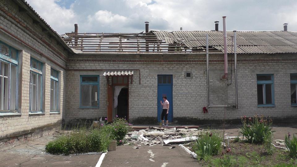 В разрушенном детском саду только вчера прошел выпускной вечер. На празднике, детям было весело и задорно! А уже ночью в детский сад прилетели 3 днровских снаряда калибром 122 мм! В результате разрушенакрыша, выбиты практически все стекла, сломана детская мебель. Сторож детского сада чудом остался жив.
