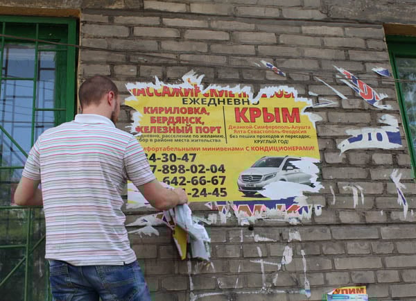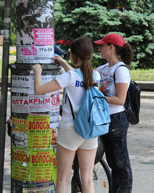 В Днепре волонтерский «десант», состоящий из студентов и выпускников днепровской Школы волонтеров вышли на свою первую акцию «Туристическому сепаратизму - СТОП». Волонтеры очистили от объявлений, призывающих к отдыху на оккупированных курортах и поездкам в страну-агрессор, территорию вокруг Озерки и жд вокзала.