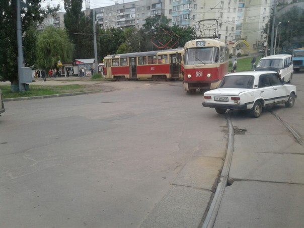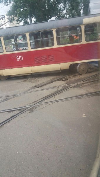 На перекресте улиц Героев труда и Тракторостроителей в Харькове, трамвай 26го маршрута сошел с рельсов.