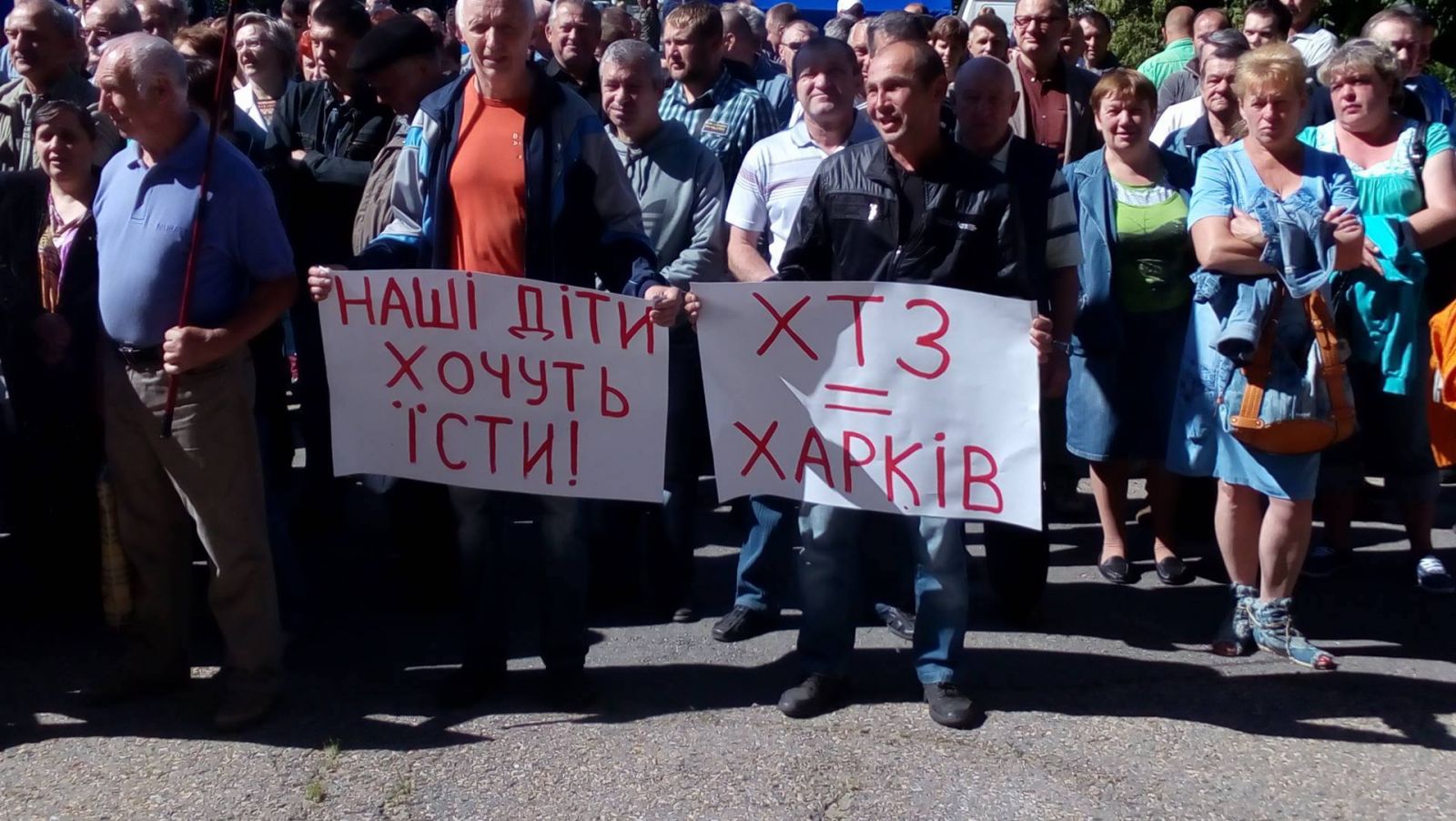 Как передает Depo.Харьков, люди держат плакаты с надписями: "Порошенко, останови рейдеров!", "Наши дети хотят есть", "Харьков = ХТЗ", "Президент, спаси ХТЗ", а также скандируют "Дайте нам работу!", "отдайте наши деньги!". Участники пикета отмечают что уже несколько месяцев не получают заработной платы, производственный процесс почти остановлен.