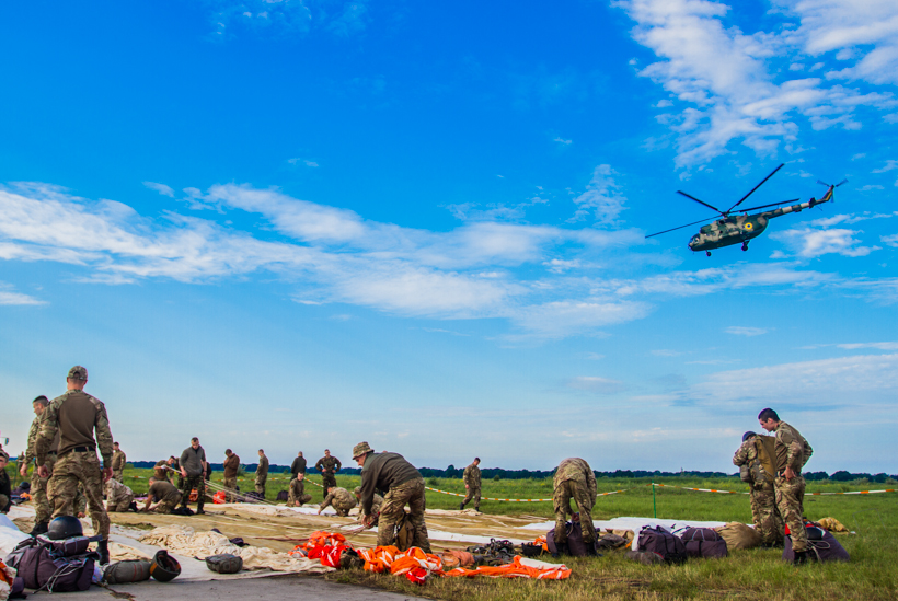 На базе Александрийского аэродрома состоялись очередные прыжки с парашютом. Рядом с бойцами спецподразделений учились правильно десантироваться и будущие офицеры Национальной гвардии Украины.