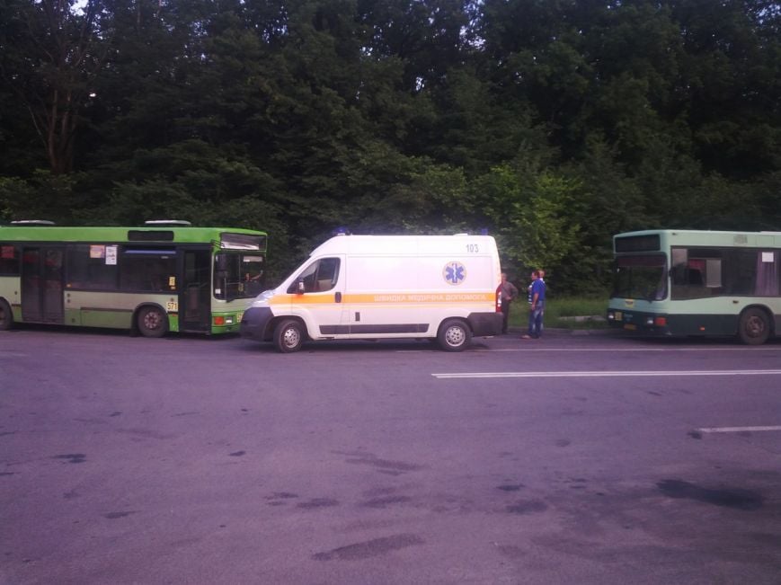 На остановке общественного транспорта маршрутка наехала на водителя.