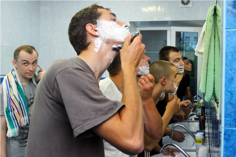 Далее новобранцами занимались непосредственные командиры. Офицеры показали солдатам их спальное помещение. В обязательном порядке военнослужащие прошли медицинский осмотр. Чтобы получить военную форму по размеру, старшина снял мерки с будущих гвардейцев.