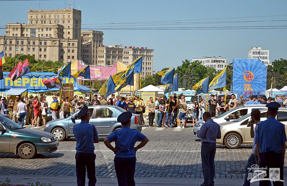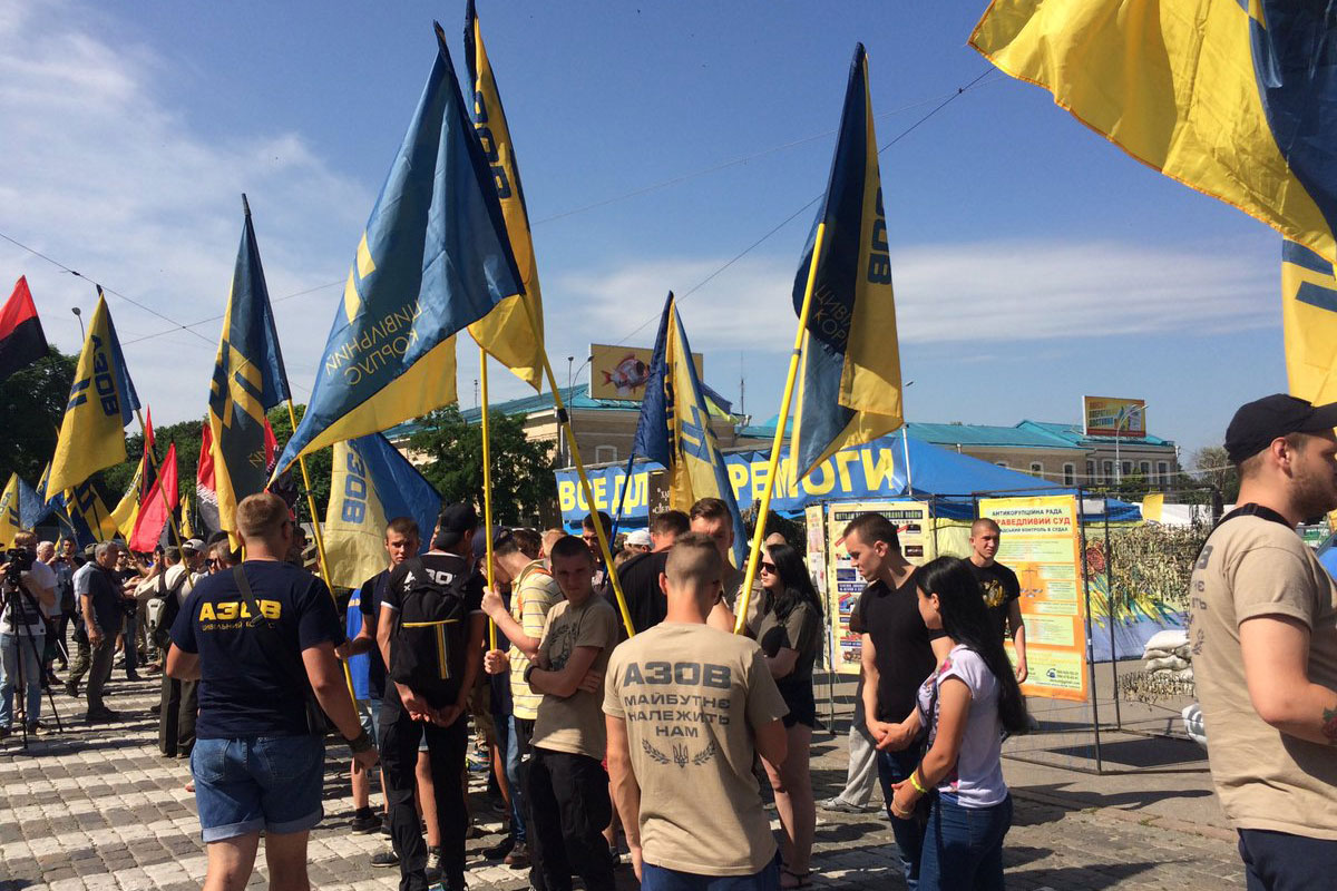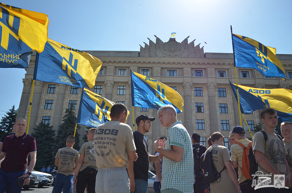 Митинг под стенами Дома советов (ул.Сумская, 64) проводят активисты гражданского корпуса "Азов", организаций "Дія" и батальона "ОУН". Отметим, сегодня - сессия Харьковского областного совета, здание охраняют полицейские.