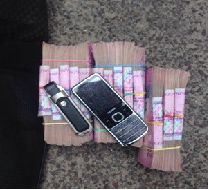 Правоохоронці під час багатоходової спецоперації "взяли" при виїзді з Києва, на заправці, двох організаторів конвертцентру. В них вилучено понад 1,3 мільйона гривень, призначені черговому клієнту. Потім співробітники спецслужби затримали у центрі столиці кур’єра під час передачі замовнику 260 тисяч гривень.