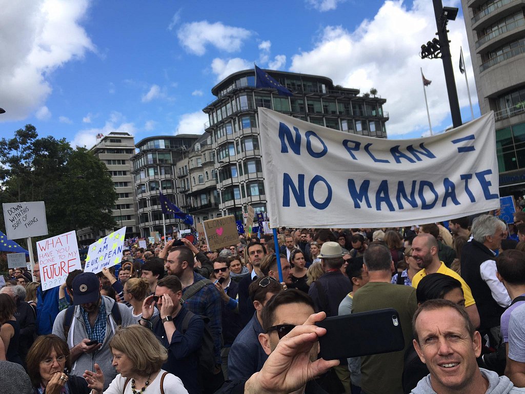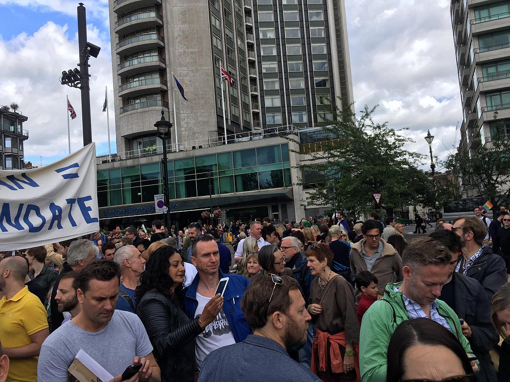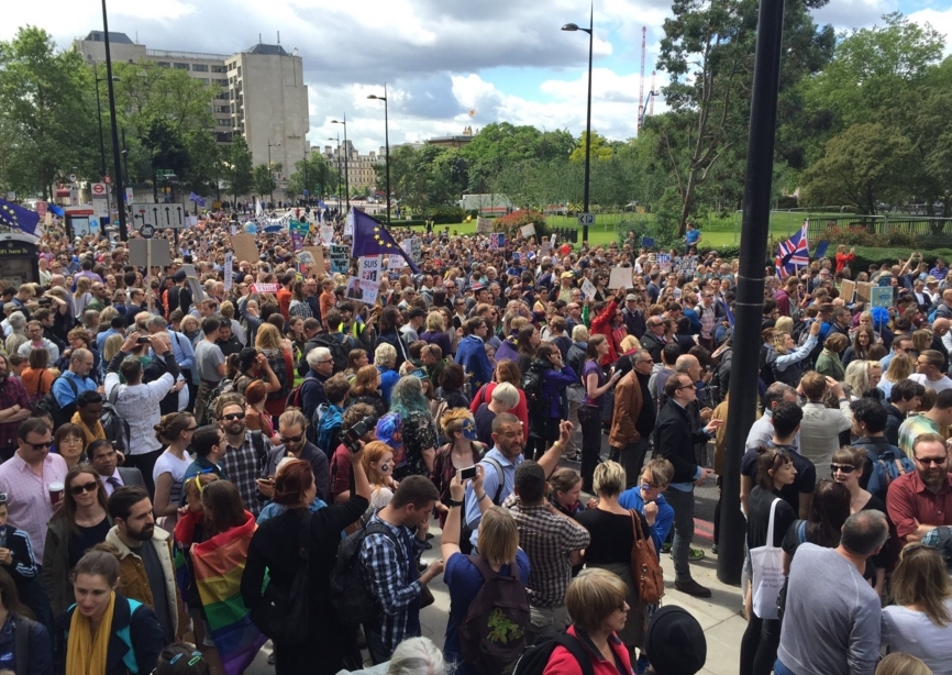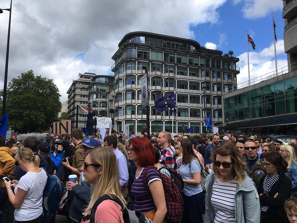 Сегодня, 2 июля, в Лондоне проходит массовая акция против выхода Великобритании из состава Европейского Союза - "Марш за Европу". На митинге, по свидетельствам очевидцев, "до 10 тысяч человек". Протестующие против Brexit собираются на Парк-лейн и сходятся к площади у здания парламента, сообщает Би-би-си.
