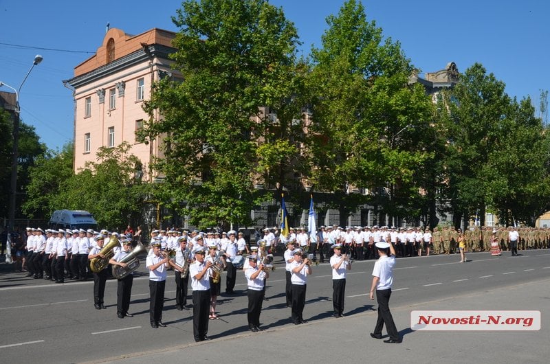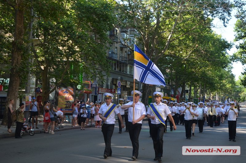В честь праздника в Николаеве прошел торжественный митинг. Николаевские моряки промаршировали с оркестром по улице Соборной, от Каштанового сквера к памятнику Ольшанцам.