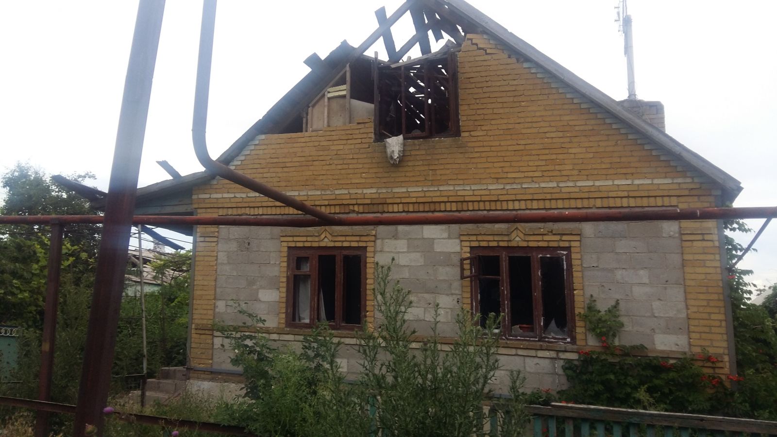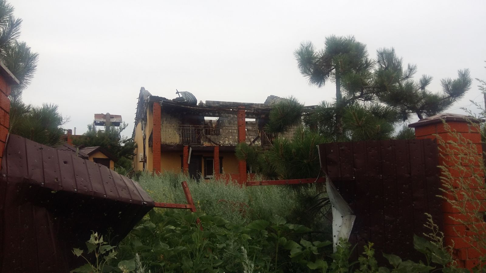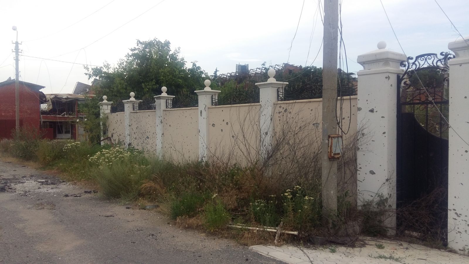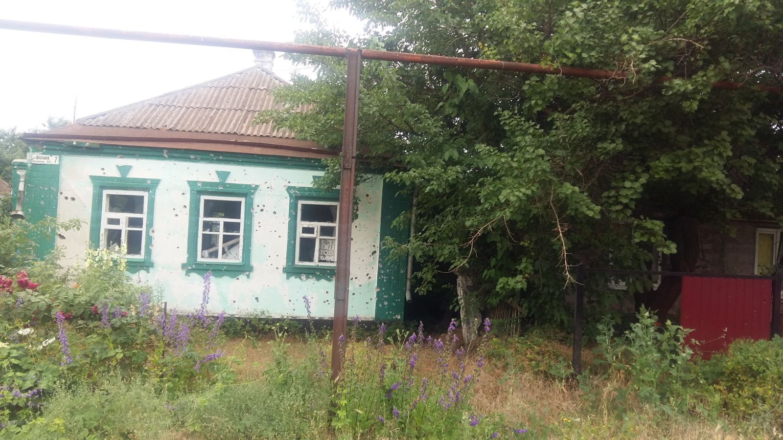 По стене дома – отверстия от осколков, жестяная крыша изрешечена и заклеена какими-то металлическими заплатками. Мать Дашеньки, увидев мой интерес к этому, вынесла металлическую клейкую ленту из дома.