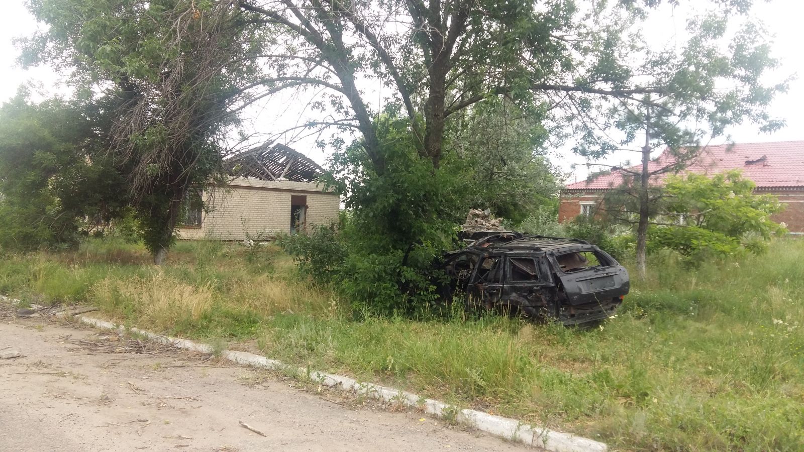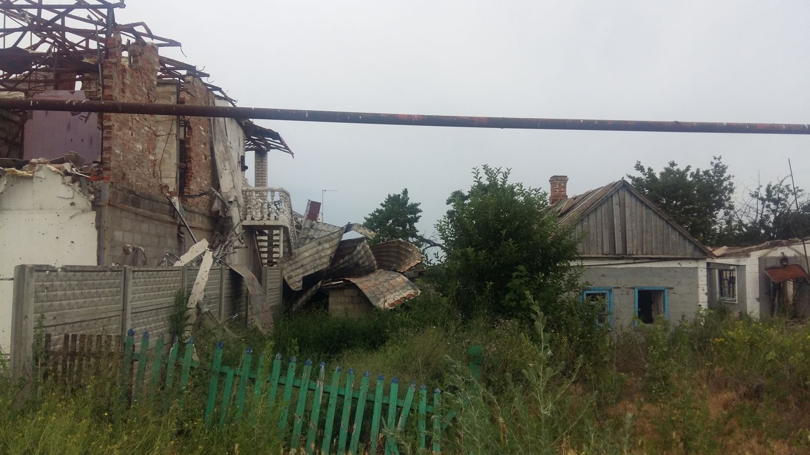 Приветственно махнув бойцу у очередного наблюдательного пункта, прохожу у моста и углубляюсь в населённый пункт. Всё, что меня окружает, – это даже не брошенный посёлок. Это какая-то декорация к постапокалиптическим фильмам. Несмотря на солнечный день, всё окружающее выглядит угрюмо.