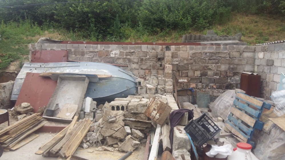 Спокойствие и доброжелательность хозяев не состыковывается с окружающей обстановкой. Видно, что часть дома восстановлена впопыхах. Некоторые постройки разрушены, лодка, прислоненная к стене, изрешечена осколками.