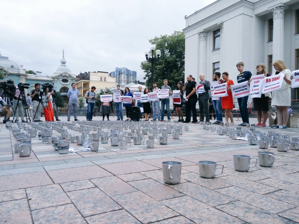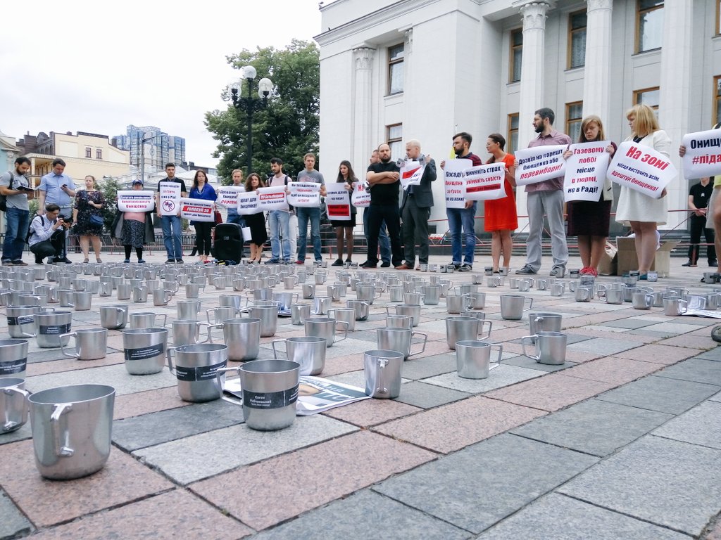 В сети с восторгом отреагировали на фотографии, сделанные у стен Верховной Рады, куда активисты принесли 450 тюремных кружек, требуя от депутатов дать разрешение на арест депутата фракции "Воля народа".