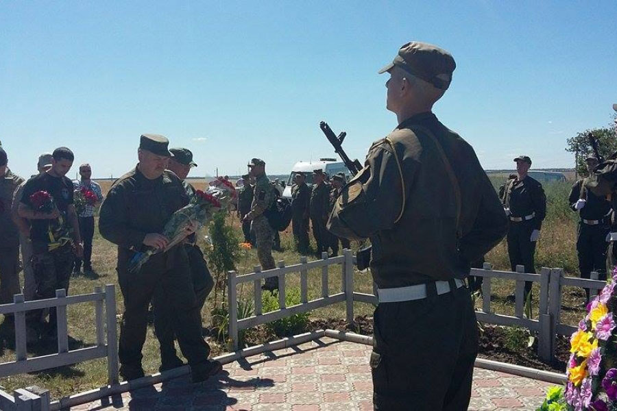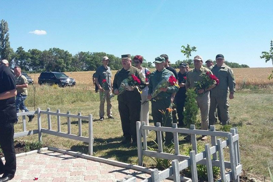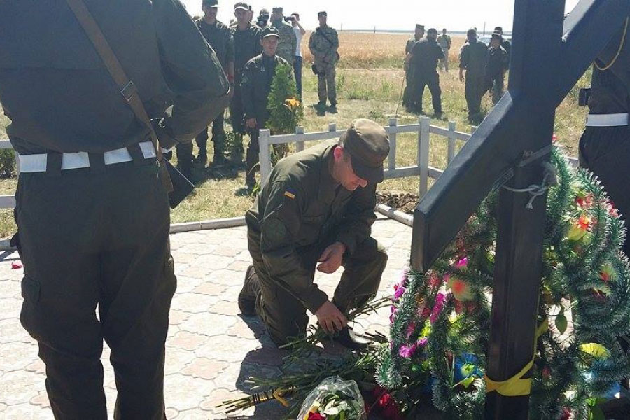 Министр внутренних дел Аресен Аваков и командующий Нацгвардии генерал-лейтенант Юрий Аллеров приняли участие в возложении цветов к памятному кресту погибших героев в трагедии с вертолетом Ми-8, который был сбит боевиками под Славянском, в котором погиб личный состав во главе с генералом Сергеем Кульчицким.