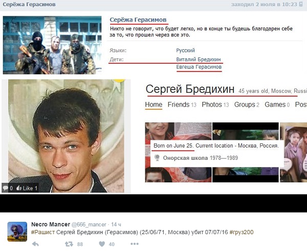У четвер, 7 липня, на Донбасі загинув Сергій Бредіхін (Герасимов), який воював на боці бойовиків. Терорист в складі розвідувальної групи підірвався на міні під Горлівкою, повідомляють Патріоти України.