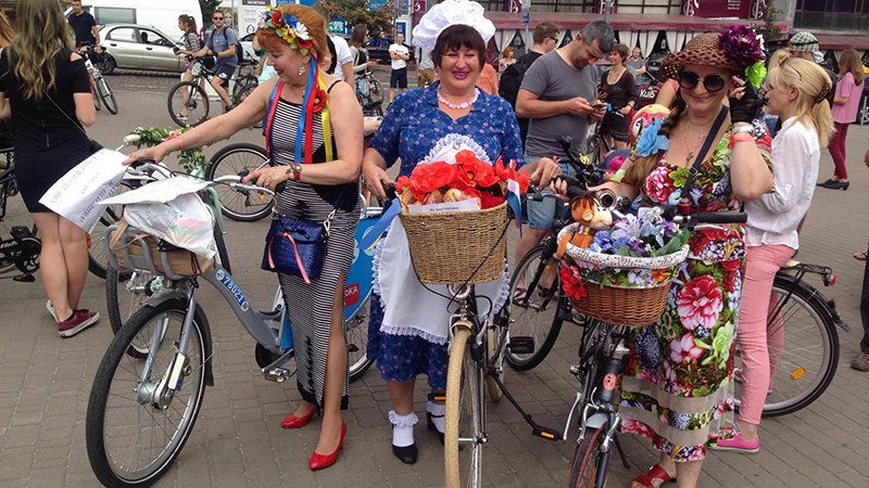 Участницы велопарада говорят, что таким образом хотят показать, что велосипед – удобный и практичный транспорт.