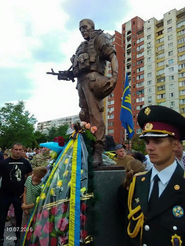 «Только что на Троещине открыли первый в Киеве памятник украинскому воину-добровольцу! Спасибо всем, кто сделал это – прежде всего депутату Киевсовета, свободовцу Петру Кузику», – написал Ильенко на своей странице в соцсети.
