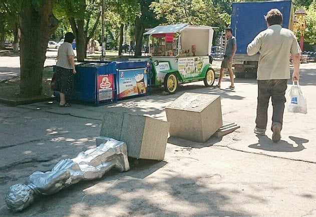 По его словам, сегодня утром обнаружили скульптуру сброшенной с постамента.