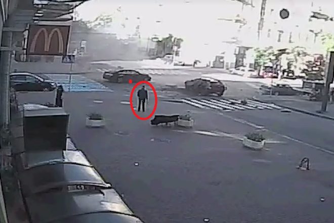 "Только спустя мгновение он поворачивается и когда видит, что к машине бегут люди, то он тоже начинает бежать. И уже ему трость не нужна. Сначала я думал что он глухой. Но кажется что это человек, привыкший к взрывам", - отмечает эксперт.