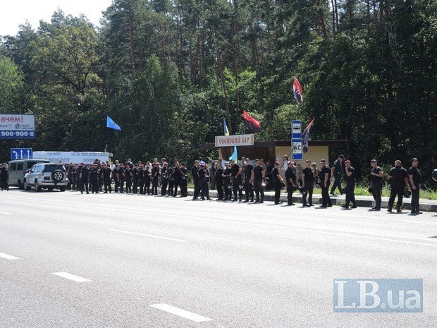 Как сообщает LB.ua, около 30 человек хотели разбить палаточный городок возле автобусной остановки "Сосновый бор". Однако полиция, которая уже была месте происшествия, помешала им это сделать (на месте заранее оказались не менее семи полицейских автобусов и два автозака). В итоге было решено разбивать лагерь с кухней, но палатки не ставить.