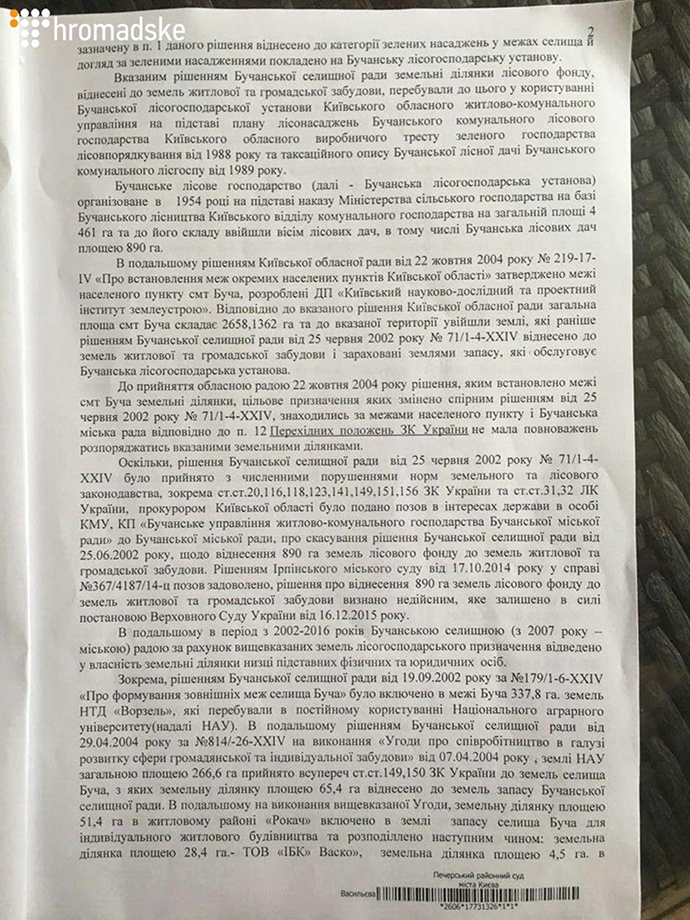 По словам мэра, в постановлении суда его фамилия не фигурирует: "Вторая страница - ни одного упоминания ни об Ирпенском городском голове, какие-то обвинения непосредственно к Карплюку отсутствуют".