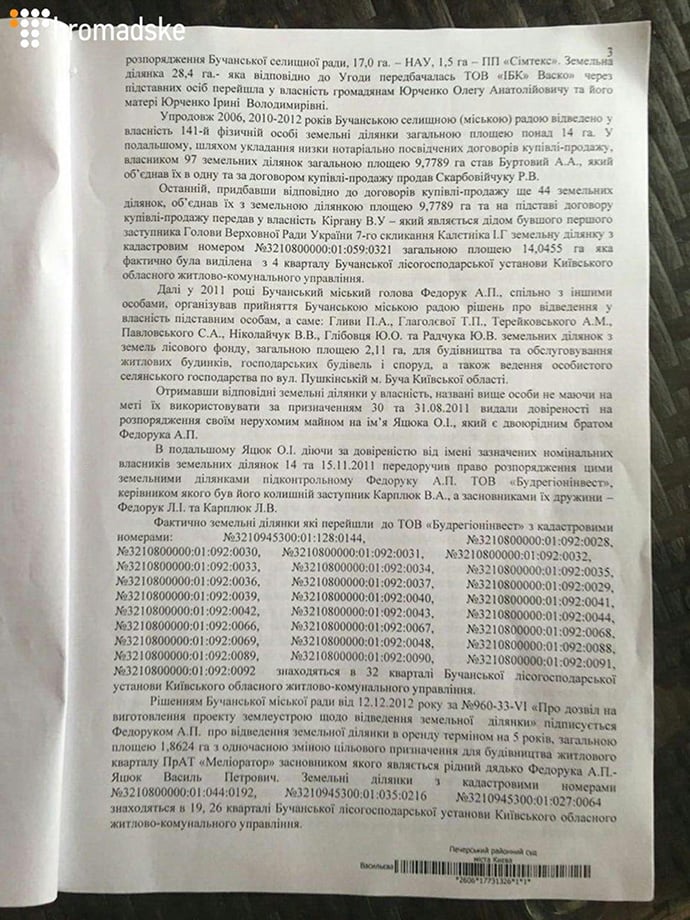 "На третьей странице, я со всей ответственностью заявляю, что никаких участков, ни Яцюк, ни любые другие лица не перепоручали за всю историю деятельности предприятия ООО "Будрегионинвест". В данном случае это "фейк", - сказал глава Ирпеня.