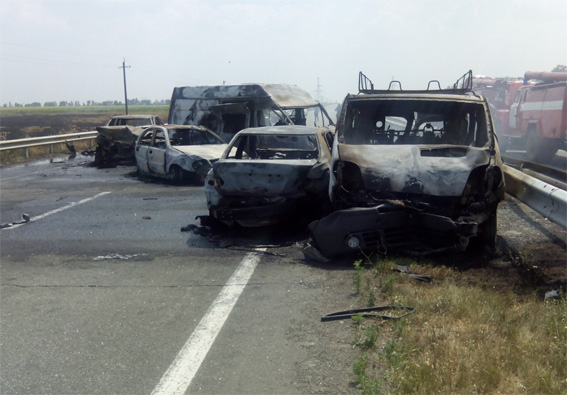По информации правоохранителей, произошло столкновение восьми авто, которые двигались в попутном направлении. Пять из них загорелось, погибло три человека, еще четыре обратились за медицинской помощью.