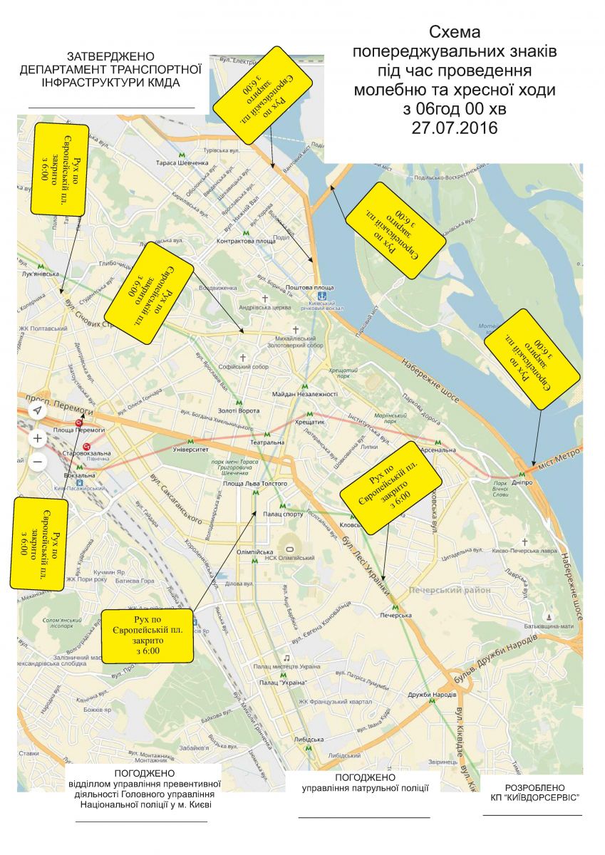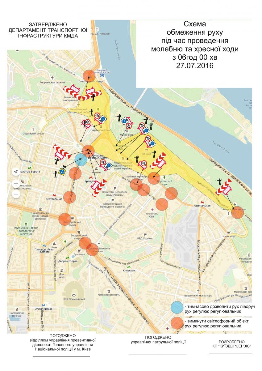 МВД опубликовало схему ограничения движения в Киеве во время проведения крестного хода.