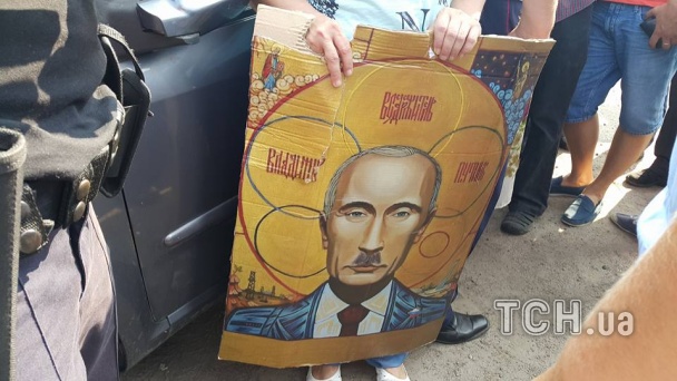 В другом месте произошли небольшие столкновения участников шествия с представителями Автомайдана. Автомайдановцы привезли с собой иконы с изображением президента России, участники шествия пытались порвать.