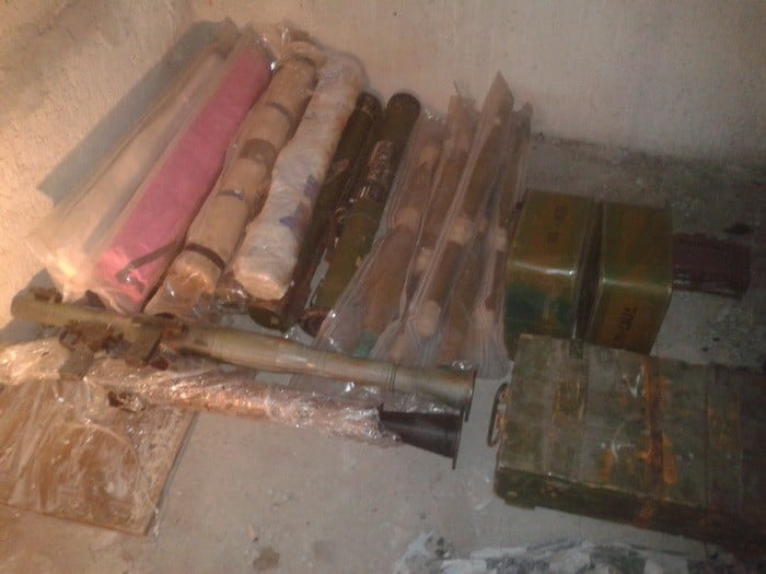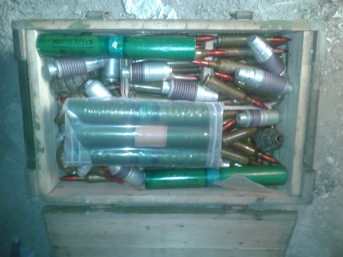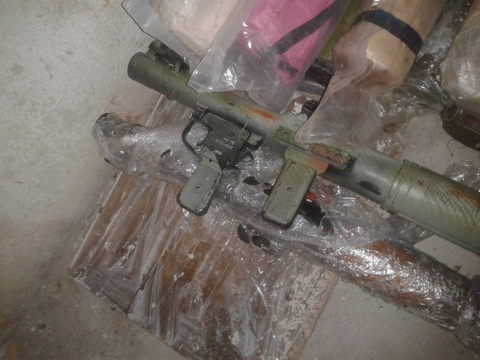 Тайник был обустроен в заброшенной хозяйственной постройке. Правоохранители изъяли из нее двенадцать гранатометов РПГ-22, РПГ-26 и РПГ-7, пять выстрелов и пороховых зарядов к ним, двадцать шесть гранат Ф-1 с двадцатью запалами, две противотанковые мины МОН-90 и МОН-50, семьдесят пять подствольных гранатометов, восемнадцать гранатометны[ выстрелов ВОГ, два цинка и еще более 140 патронов калибра 14,5 мм.