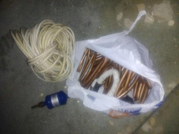 В сумке у задержанного находились медные трубки и части кондиционера. Также злоумышленник имел при себе нож.