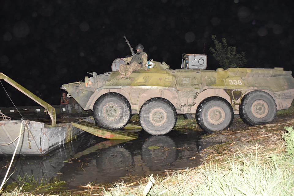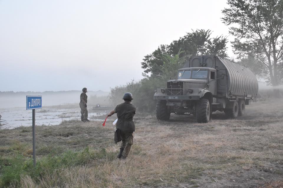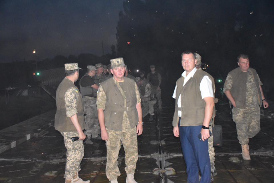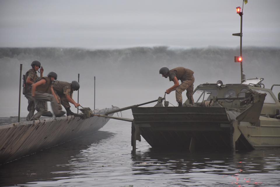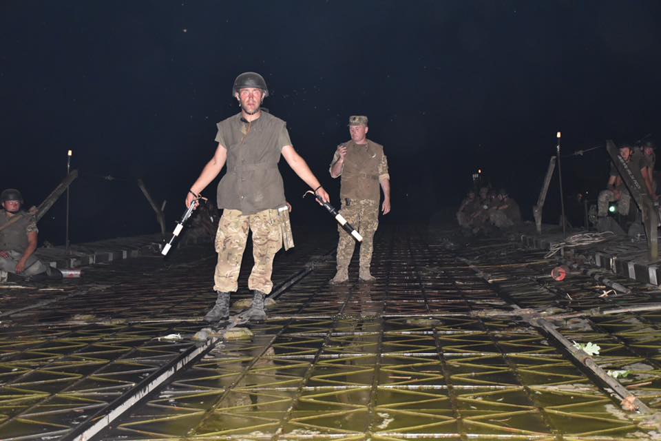 Депутат местного облсовета Николай Ставицкий сообщает, что вместе с начальником Генерального штаба Виктором Муженко, который лично прибыл для контроля учений, он приняли участие в первой в Украине ночной переправе.