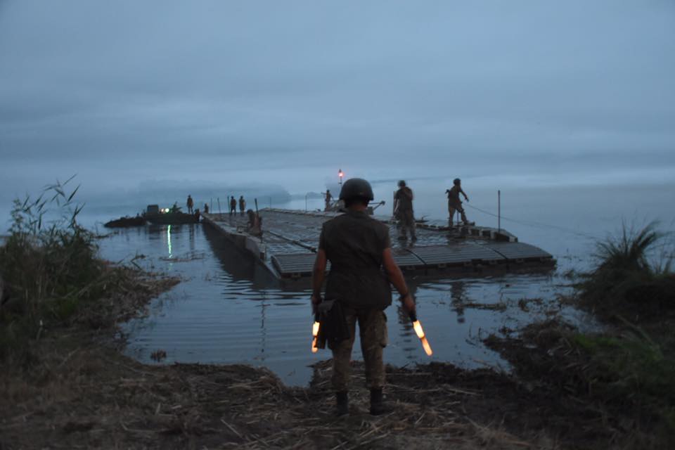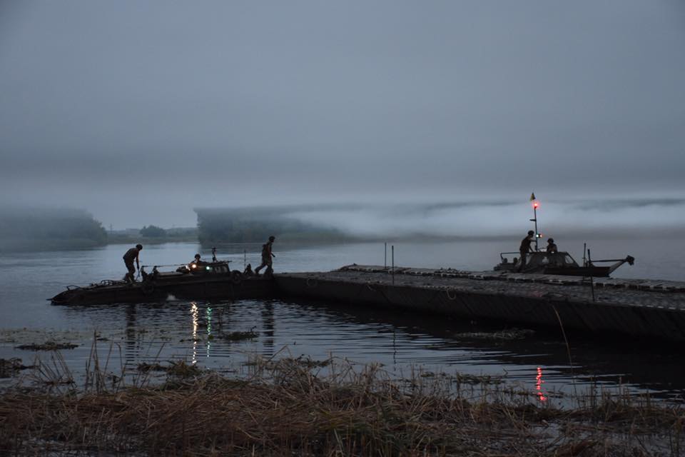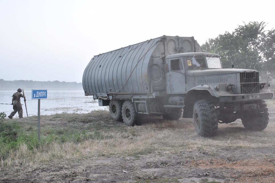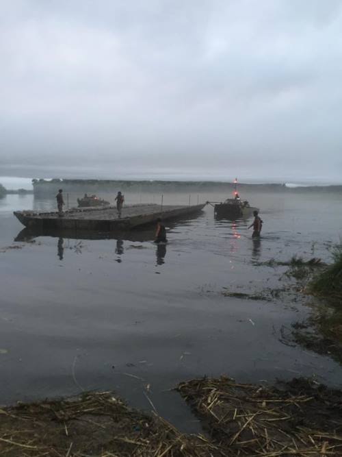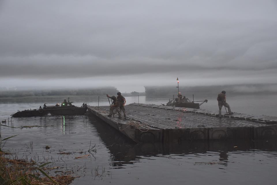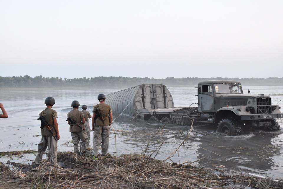 Депутат местного облсовета Николай Ставицкий сообщает, что вместе с начальником Генерального штаба Виктором Муженко, который лично прибыл для контроля учений, он приняли участие в первой в Украине ночной переправе.