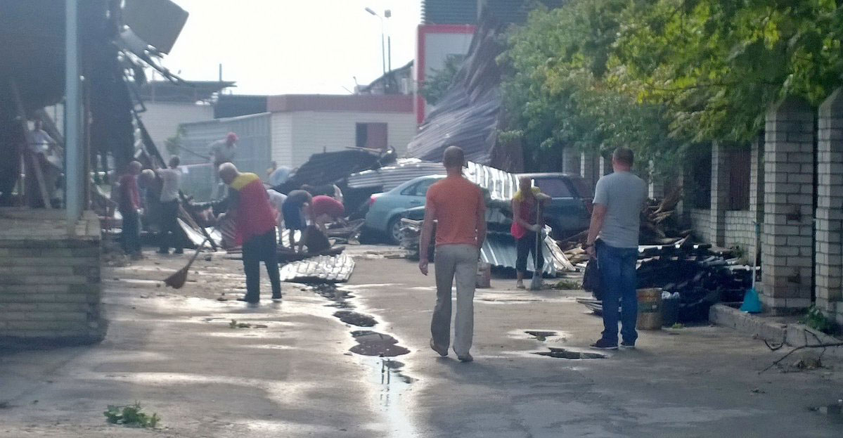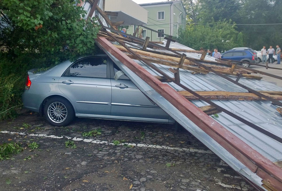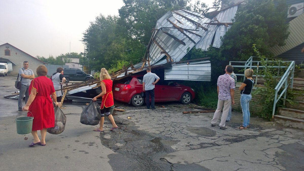 Фотофакт: В Харькове сильный ветер снес железные конструкции. Под завалами оказались машины