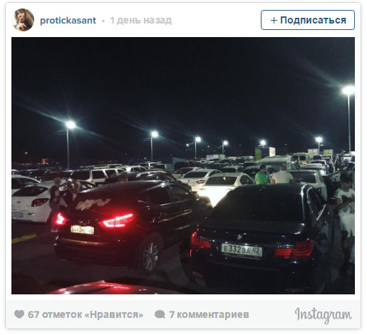 «Раньше я это видела только в новостях по телеку и не думала, что сами попадем в такую ситуацию. Приехали в 02:30 ночи на регистрацию на паром. Сейчас 11 утра и мы все никак не можем проехать. В связи с ожиданием теракта на пароме, вроде как 7-9 августа будет проходить полная проверка автотранспорта. Это ужасно медленно. Хорошо, что здесь есть зал ожидания с кондиционерами, здесь мы и прячемся от жары на надувном матрасе. Есть и туалет, и забегаловки, где можно выпить чай/кофе и съесть хоть булочку или бургер; а утром раздавали всем желающим питьевую воду. Ну, все можно понять… Проверка нужна для нашей же безопасности, но можно же подключить побольше сотрудников, чтобы проверять машины побыстрее. Так жалко смотреть на больных людей, деток (до года пропускают без очереди, а кто взрослее уже без льгот), беременных (пропускают только с 27 недель и только со справкой), кто-то опаздывает на самолет, кто-то на похороны… Ужас… А в это время паромы уходят полупустые…», — пишет Валентина.